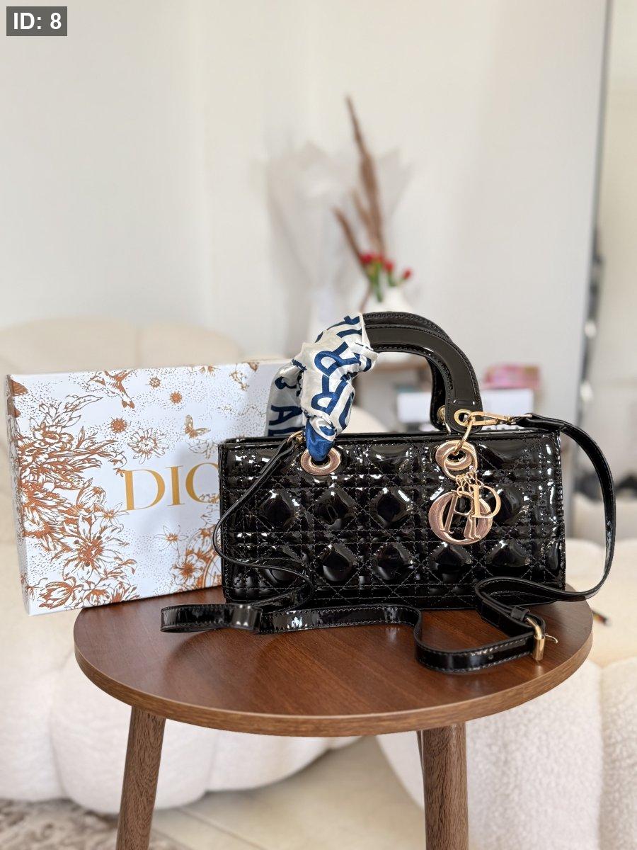حقيبة ديور شكل مستطيل مع علبة وشبرة وستراب طويل قاعدة 26سم